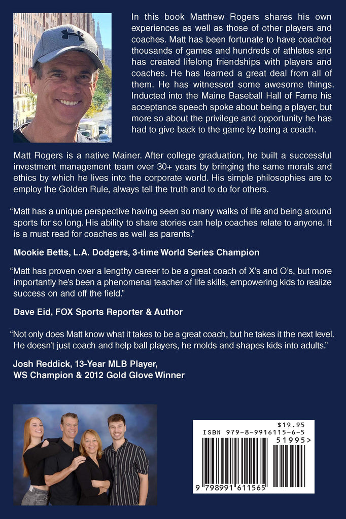 In this book Matthew Rogers shares his own experiences as well as those of other players and coaches. Matt has been fortunate to have coached thousands of games and hundreds of athletes and has created life long friendships with players and coaches. He has learned a great deal from all of them and he has witnessed some awesome things. Inducted into the Maine Baseball Hall of Fame, his acceptance speech spoke about being a player, but more so about the privilege and opportunity he has had to give back to the game by being a coach.